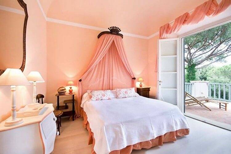 Персиковый и белый в интерьере спальни