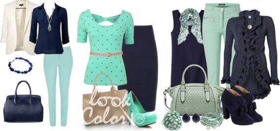 Сочетание мятного и бежевого в одежде