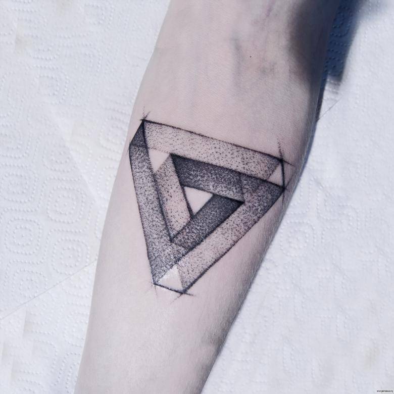 Фигура в которой участвуют три треугольника возвращает символ к основному значению —триединство, но более могущественное, нерушимость трех основ жизни. Эта композиция треугольников сильно выражает мужскую силу.