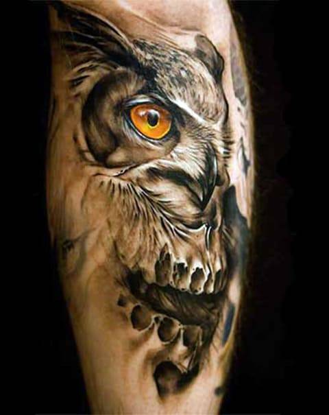 Нательное изображение совы с черепом расскажет про склонность обладателя к мистицизму. Подобные нательные рисунки делают как мужчины, так и женщины. Чаще всего такие тату делают на спине или же груди.