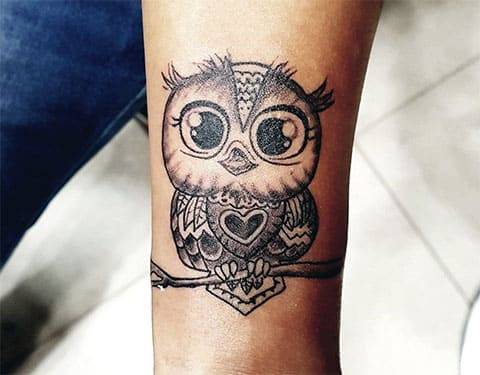 Татуировку с совой можно расположить на плече или предплечье. Имеются также варианты эскизов, когда рисунок представляет собой тату-рукав. Иногда встречается изображение лапы совы на руке.