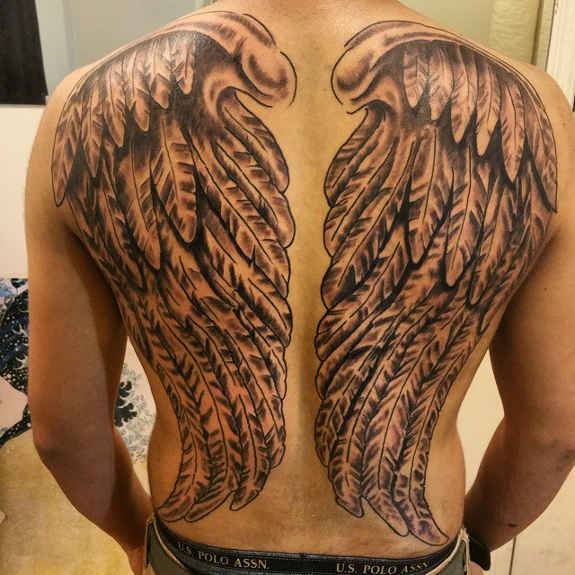 Мужские тату крылья на спине – фото татуировок с ангелом