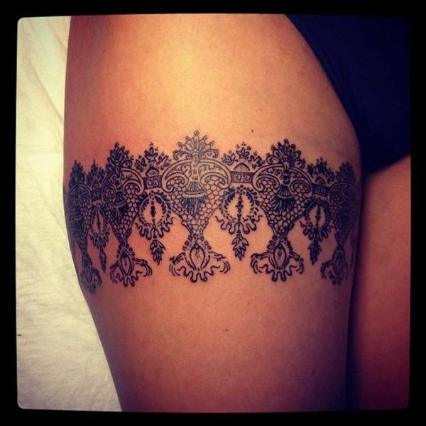 Зона бедра отлично подходит для рисования больших тату, и порой их растягивают по всей длине ноги.