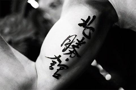 Самый популярный вариант – тату иероглифы на руке. Это может быть один иероглиф в миниатюре на запястье или более крупный на плече. Или несколько иероглифов расположенных в вертикальную линию на плече или предплечье. Разместить символы можно и в горизонталь. Чаще всего горизонтальный вариант встречается как тату иероглифы на запястье. Его чаще предпочитают девушки. Такая тату не сильно бросается в глаза окружающим, и постоянно находится в зоне собственной видимости.
