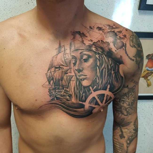 Эта часть тела – огромный холст, позволяющий нанести любое изображение, которое может стать символом гордости для мужчин и магнитом для женщин. Ниже рассмотрим самые распространенные идеи, используемые для тату на груди у мужчин.