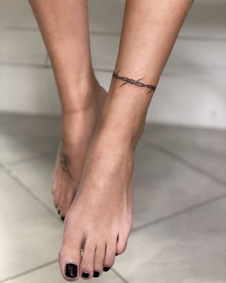 Оригинальный способ выразить себя для любителей украшений – тату в виде браслета. Зачастую на щиколотке такие рисунки делают очень тонкими, минималистическими. Все потому, что данная зона достаточно небольшая и массивные браслеты с множеством деталей смотрятся неуместно.