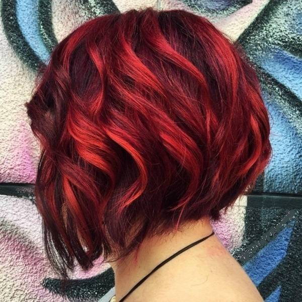 - Цветной балаяж. Трендовым вариантом является постепенный переход к вишневым, бордовым, сливовым оттенкам, но может дополняться яркими, кричащими оттенками розового, красного, зеленого, фиолетового и других цветов.