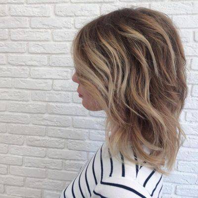 Мелирование балаяж – это осветление волос по зонам. Используется на коротких и асимметричных стрижках, таких как каскад, лесенка, градуированный боб. Такое окрашивание отлично подходит к волнистым локонам.