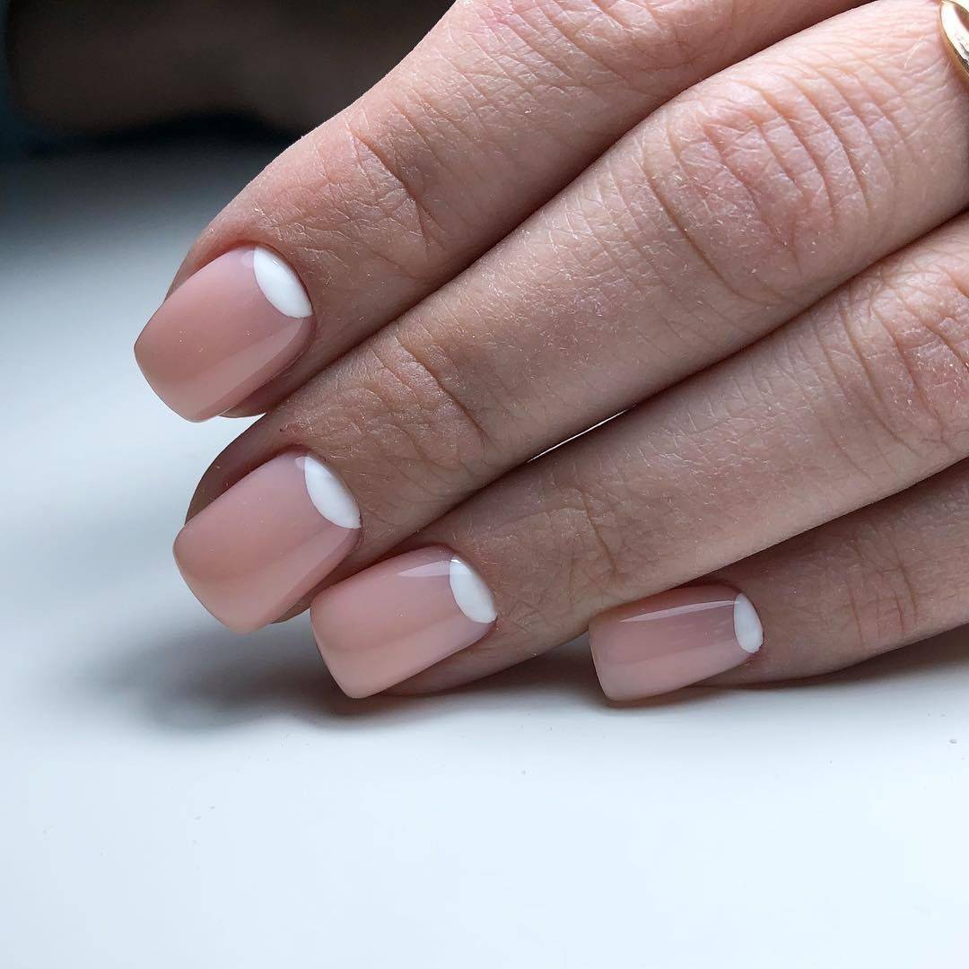 Основная часть ногтевой пластины, выполненная в розовых, бежевых или кремовых тонах оттеняется ярким, белоснежным кончиком. Это именно тот минимальный дизайн, который украсит любую девушку, независимо от ее предпочтения и образа жизни.