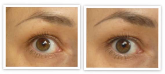На фото ниже: моя бровь просто с остатками татуажа и после нанесения тинта.
