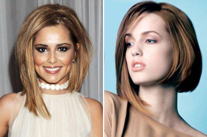 Такая корректирующая черты лица стрижка может выполняться в форме овала, асимметрии или с подкручиванием прядей кверху.