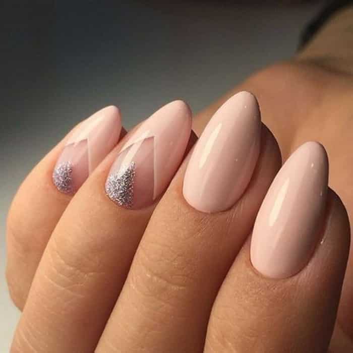 Естественность снова актуальна в 2018 году и нейл-мастера предлагают покрытие нюдовыми, пастельными оттенками на классических миндальных ногтях и на заостренных. Такой дизайн комбинируется с металлическими и блестящими тонами (на нескольких пальчиках).
