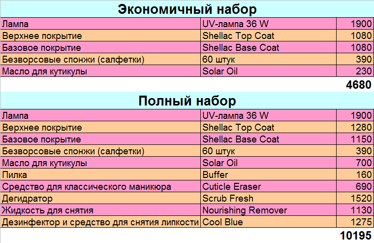 Покупая материалы и оборудование для маникюра с использованием Шеллак, внимательно следите за качеством продукции, чтобы не навредить ногтям. Сейчас продаются готовые наборы для домашнего использования, а можно купить все предметы по отдельности.