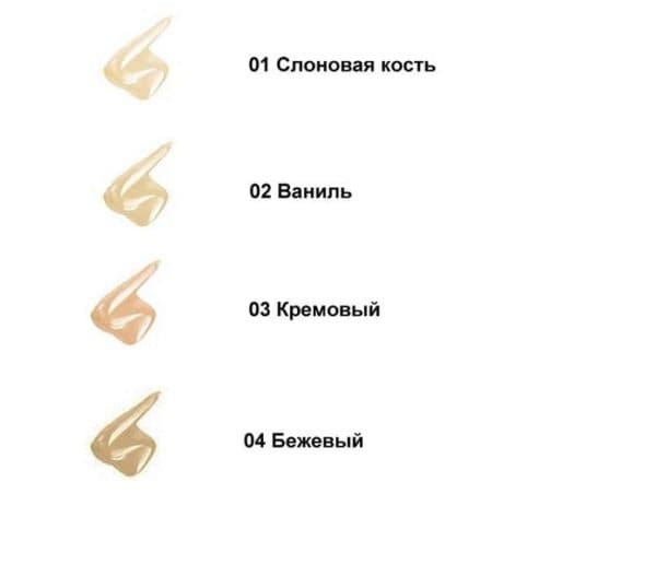 В линии описываемого средства десять всевозможных оттенков. Они представляют собой вариации бежевого, от ультра-светлого, до шоколадно-темного. Все цвета имеют свой номер, по которому его быстро найдут продавцы в магазинах.
