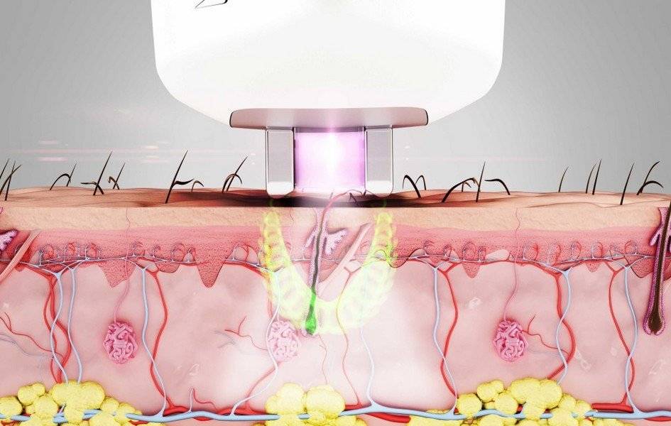 Синергичное облучение разрушает волосяные фолликулы, так что новые волоски отрастут через 5 лет, не раньше