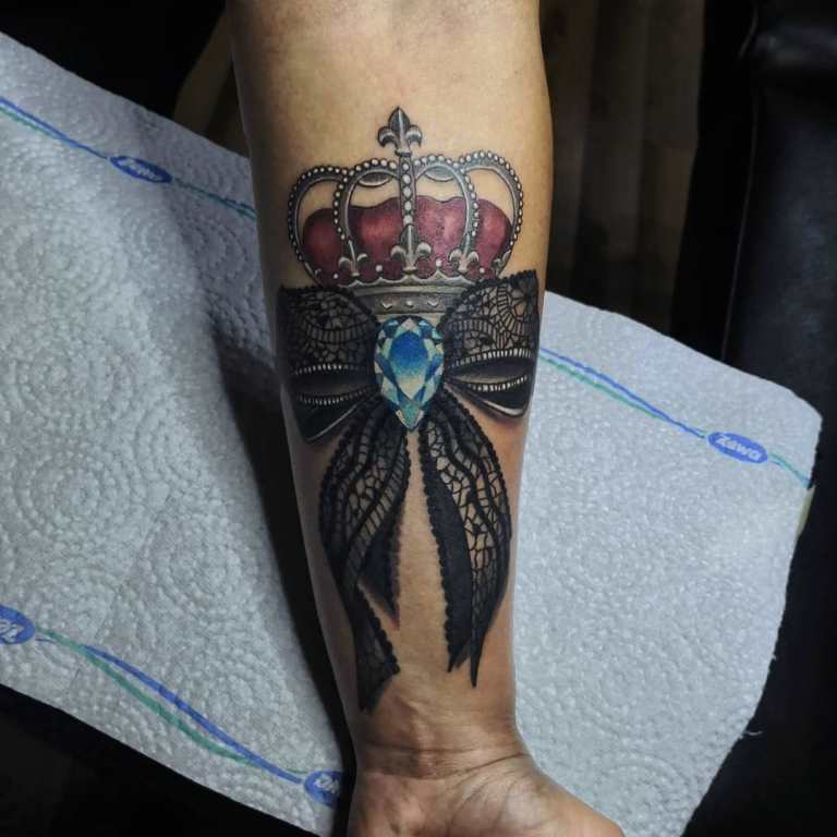 Поскольку данный мотив используется девушками для выражения эмоций, чувства любви, страсти и открытого сердца, то чаще всего ленты изображаются в ярких цветах: красном, желтом, розовом, голубом и т.д. Но поскольку вкусы и предпочтения женщин различаются, то вы можете свободно выбирать окрас ленточек из любых оттенков, близких вашей душе, даже если это черный цвет. Вы также можете добавить к основному эскизу любые дополняющие элементы: маленькие сердечки, бабочки, стрелы, луну или цветы, чтобы сделать его еще более женственным. Но помните о том, что они могут менять или дополнять значение тату в виде банта.