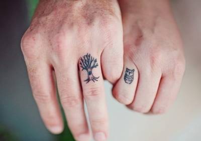Аллергия на драгоценные металлы может стать причиной у будущих мужа и жены для набивания тату в виде колец вместо обручальных, можно добавить и надпись. Какие самые популярные парные татуировки особенно пришлись по душе влюбленным?