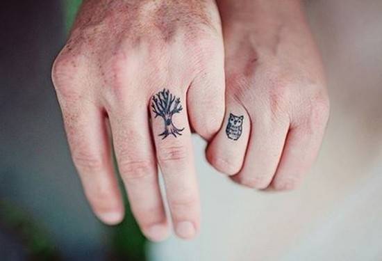 Чаще всего татуировка на пальце является частью более сложного рисунка. Самый распространённый вариант – на каждом пальце обозначена буква, при сжатом кулаке они складываются в слово. Иногда тату может имитировать кольцо (наиболее популярные сюжеты – обручальное или Кольцо Всевластия).