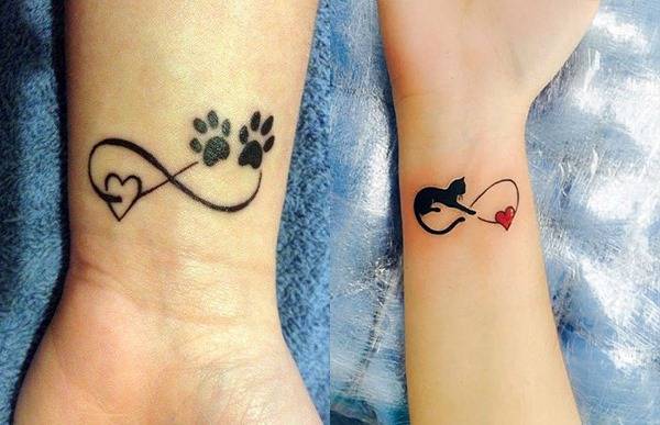 Оригинально смотрятся сочетание знака бесконечности с линиями жизни, перышками, птицами, розами, надписями на латыни или иностранных языках. Встречается наложение двух знаков бесконечности в виде креста.